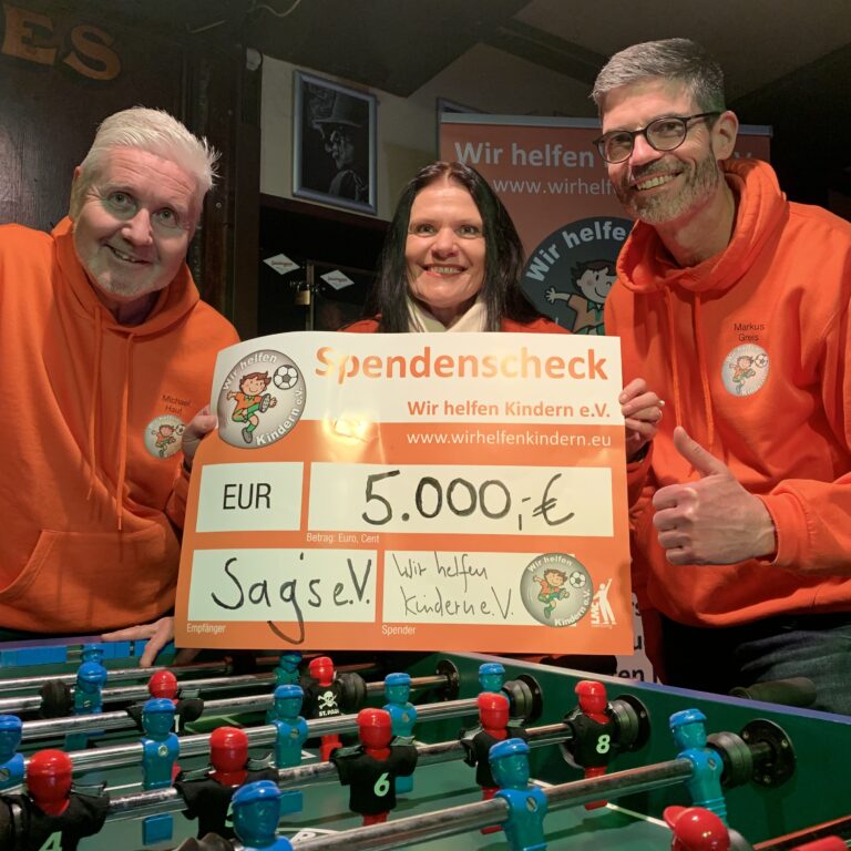 Sag’s e.V., die Beratungsstelle gegen sexualisierte Gewalt an Kindern in Langenfeld und Monheim, freute sich über den Besuch von Armin van der Sanden und Marius Jares von Crane