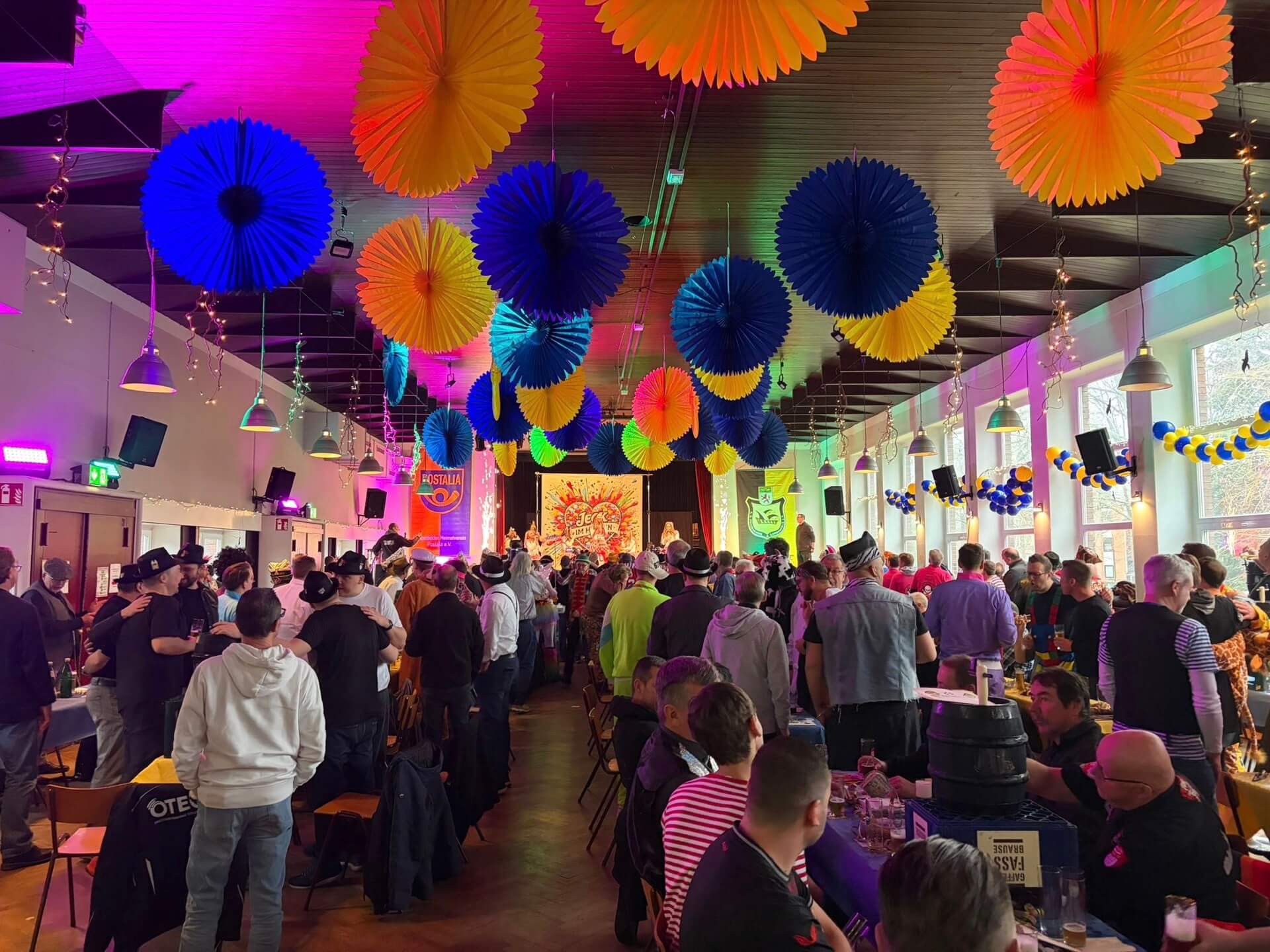 Von Beginn an herrschte eine mitreißende Atmosphäre, die sich durch das gesamte Programm zog. Den schwungvollen Auftakt gestaltete der Redner „Dä Tuppes vum Land“ (Jörg Runge), der mit pointiertem Humor und treffsicheren Gags für zahlreiche Lacher sorgte. Anschließend brachten die Funky Marys mit ihren bekannten Songs den Saal zum Mitsingen und Schunkeln.