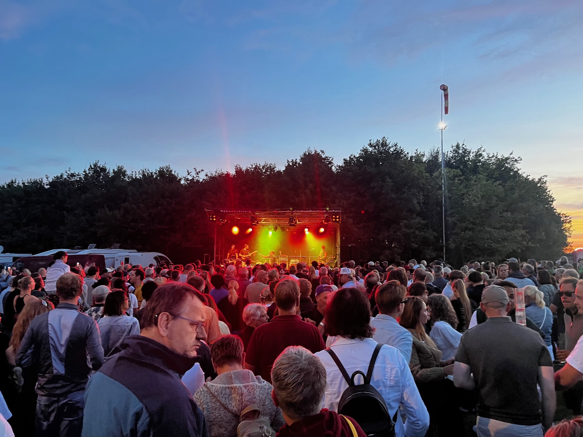 Doch nicht nur über den Wolken war einiges geboten. Auch auf dem Festgelände herrschte reges Treiben: Familien, Technikbegeisterte, Fotografen und einfach Neugierige schlenderten entlang der Stände, ließen sich mit frisch Gegrilltem, kühlen Getränken und süßen Leckereien verwöhnen und genossen die entspannte Atmosphäre auf dem weitläufigen Gelände. Für die musikalische Begleitung sorgte die Band Jim Buttons, die mit ihrer Live-Performance am Abend für mitreißende Stimmung sorgte.