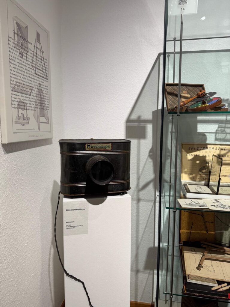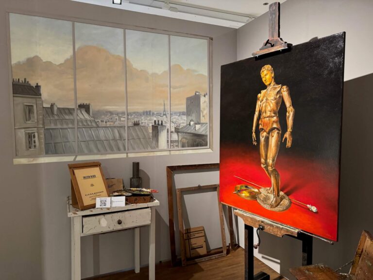 Zu sehen sind historische Farbkästen, seltene Pigmente, alte Malwerkzeuge, Pinsel und Mischpaletten – bis hin zu frühen optischen Apparaturen wie der Camera Obscura, mit der Künstler einst die Wirklichkeit beobachteten und auf Leinwand übertrugen. Diese Objekte erzählen stille Geschichten vom schöpferischen Prozess und von der ständigen Suche nach Ausdruck, Perfektion und Inspiration.