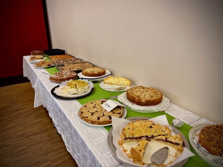 Ein besonderes Highlight – im wahrsten Sinne des Wortes – war das große Kuchenbuffet im Innenbereich. Hier wartete eine vielfältige Auswahl an hausgemachten Kuchen und Torten, frisch aufgebrühter Kaffee und kalte Getränke auf die Gäste. Der süße Duft frisch gebackener Leckereien lag in der Luft und machte es schwer, nicht mindestens ein Stück zu probieren. Überall saßen Menschen, plauderten, lachten und genossen die gemütliche Stimmung. Begleitet wurde das Ganze von sanften Klavierklängen, die den Raum erfüllten, ohne sich in den Vordergrund zu drängen. Die Musik sorgte für eine besondere Atmosphäre – elegant, ruhig, beinahe poetisch – und unterstrich das angenehme Miteinander des Tages.