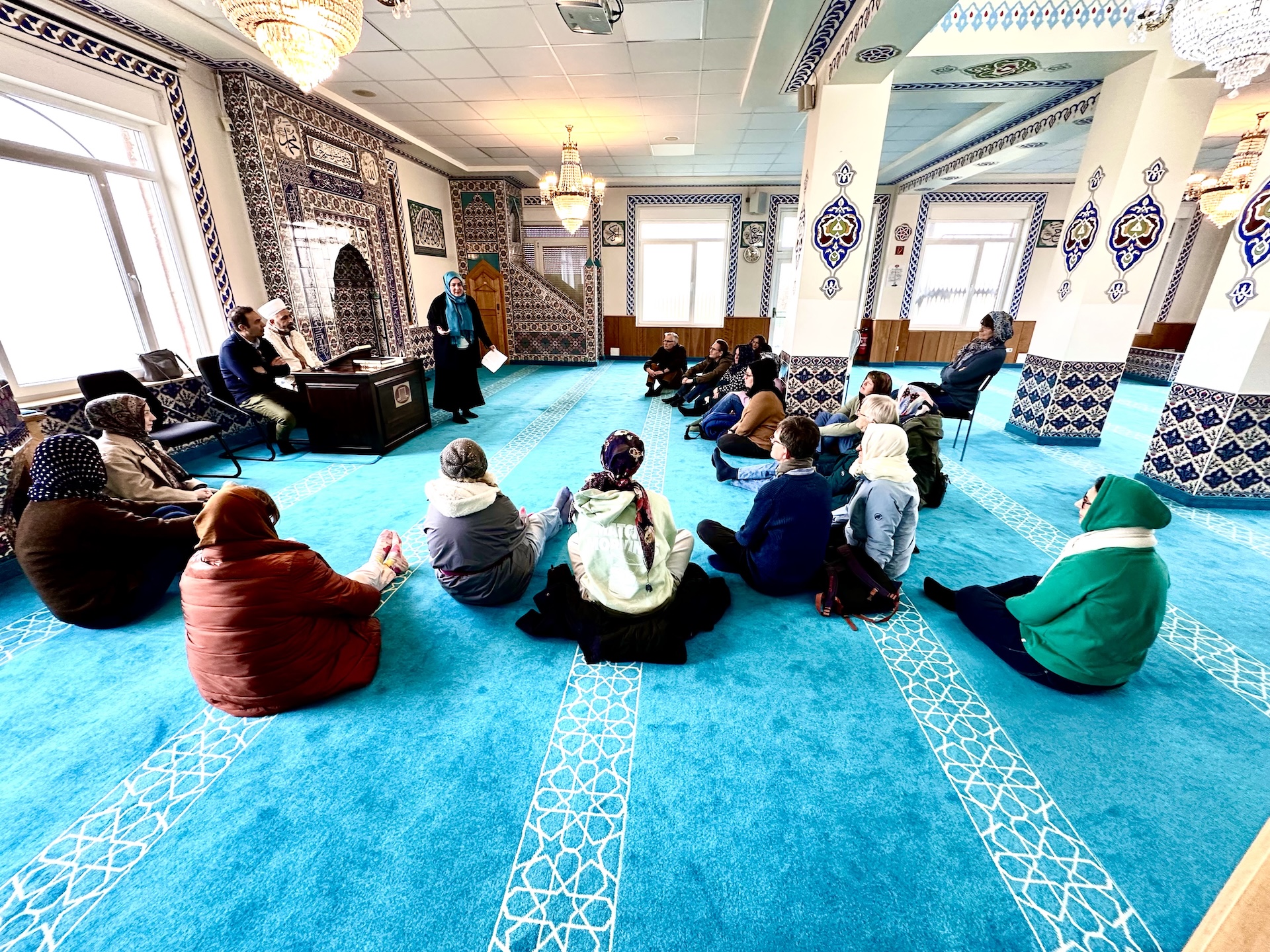 Während des rund anderthalbstündigen Rundgangs führen geschulte Gemeindemitglieder die Gäste durch die Räumlichkeiten und erläutern die Bedeutung der Gebets- und Waschräume sowie der Gemeinschaftsbereiche. Bei einer Tasse Tee gibt es Gelegenheit zu Fragen zur Geschichte der Moschee, zu religiösen Bräuchen und zur Rolle der Gemeinde in Langenfeld.